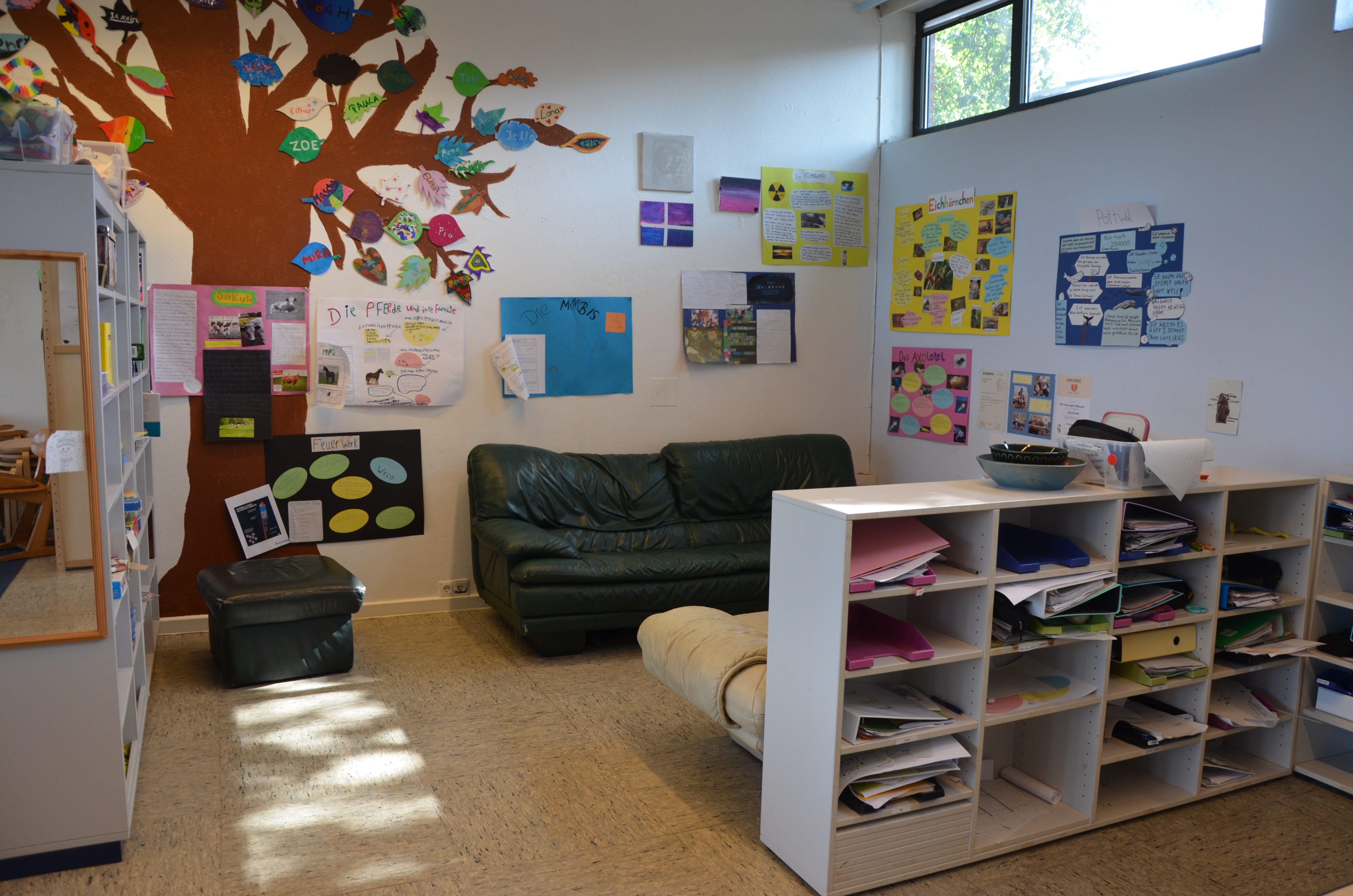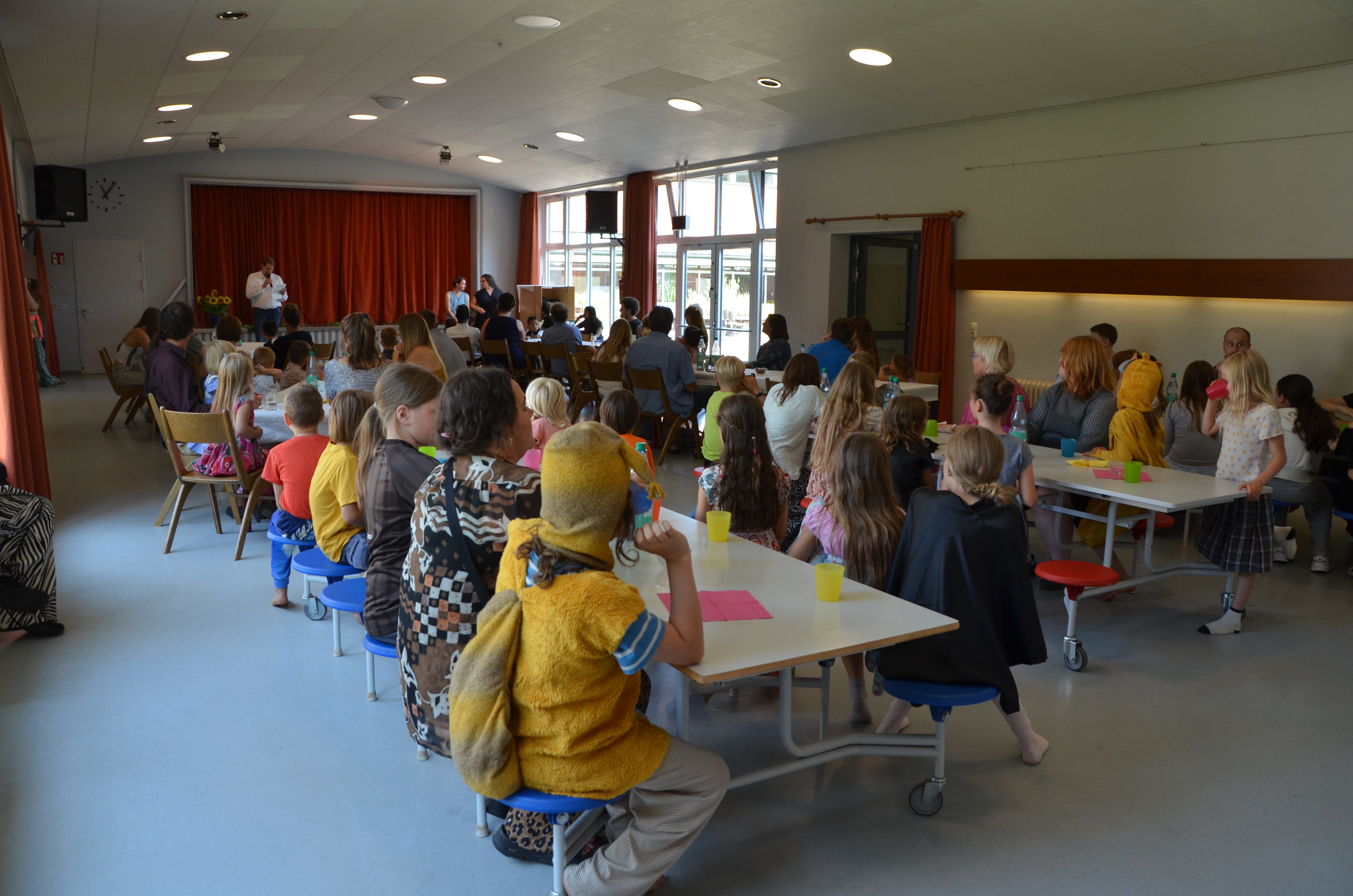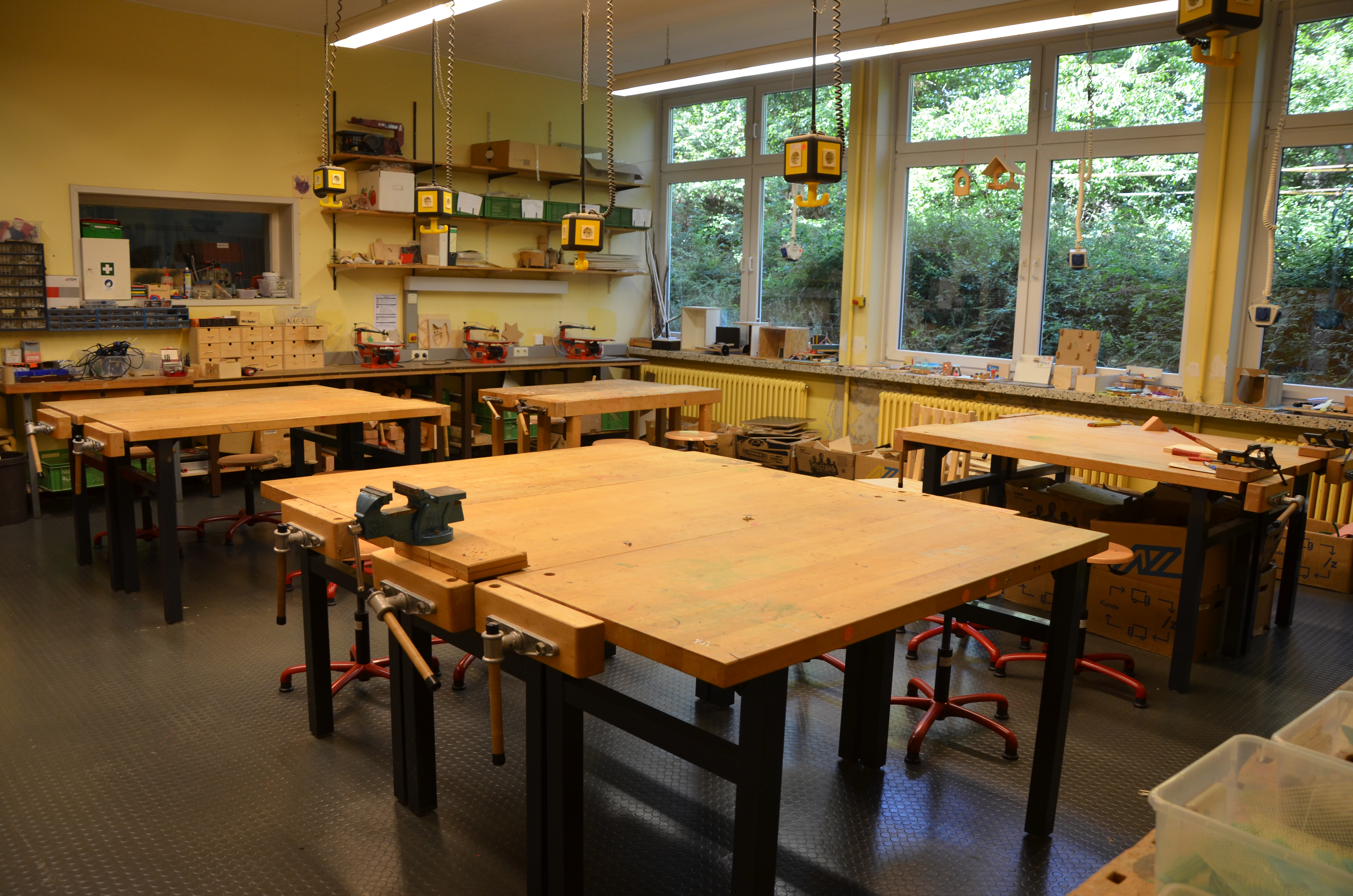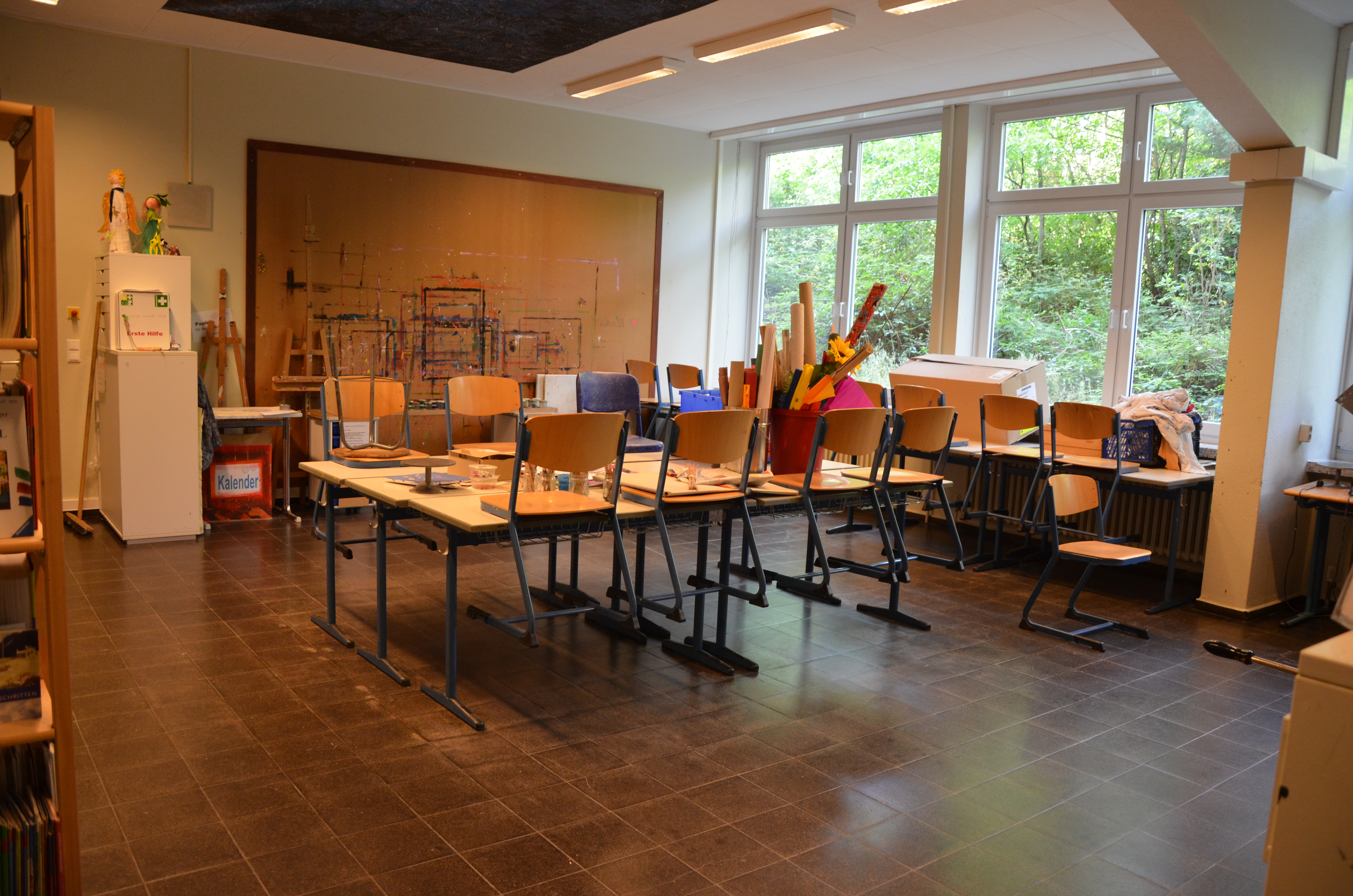 Mit der Waldschule teilen wir uns die Aula und eine Lehrküche. Die Turnhalle wird von vielen Menschen aus den Schulen und den örtlichen Vereinen genutzt. Sie bietet eine große Zweifachhalle, eine kleine Halle und einen sogenannten Kraftraum mit langer Spiegelwand.