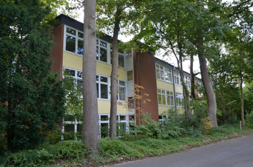Unser Schulgebäude ist Teil eines größeren Gebäudekomplexes, zu dem zusätzlich die Waldschule Steyerberg (örtliche Grundschule), ein Turnhallengebäude und die kommunale Gemeindebücherei gehören. Auch das Steyerberger Gemeindearchiv nutzt zwei Räume im Obergeschoss unserer Schule.