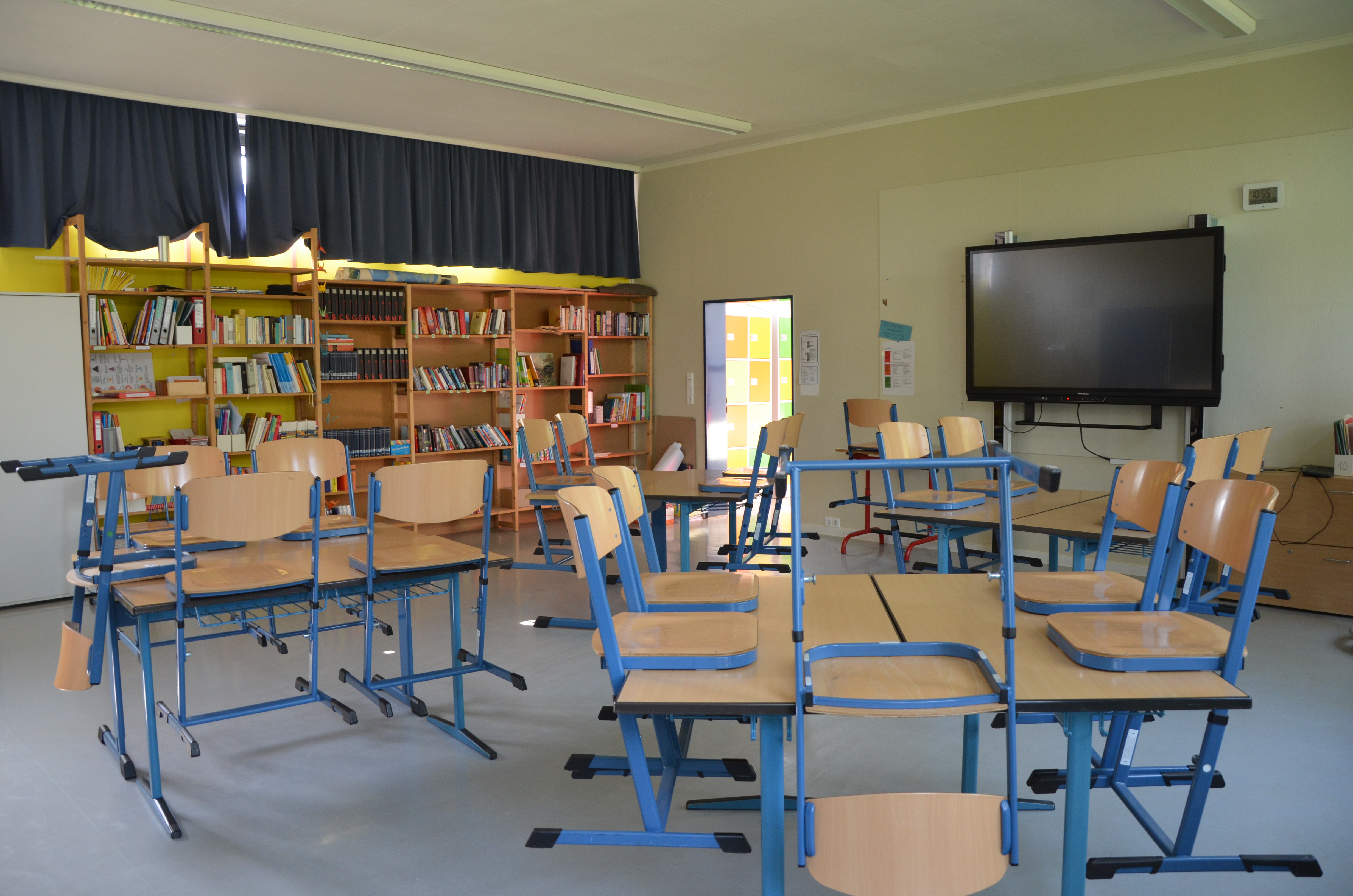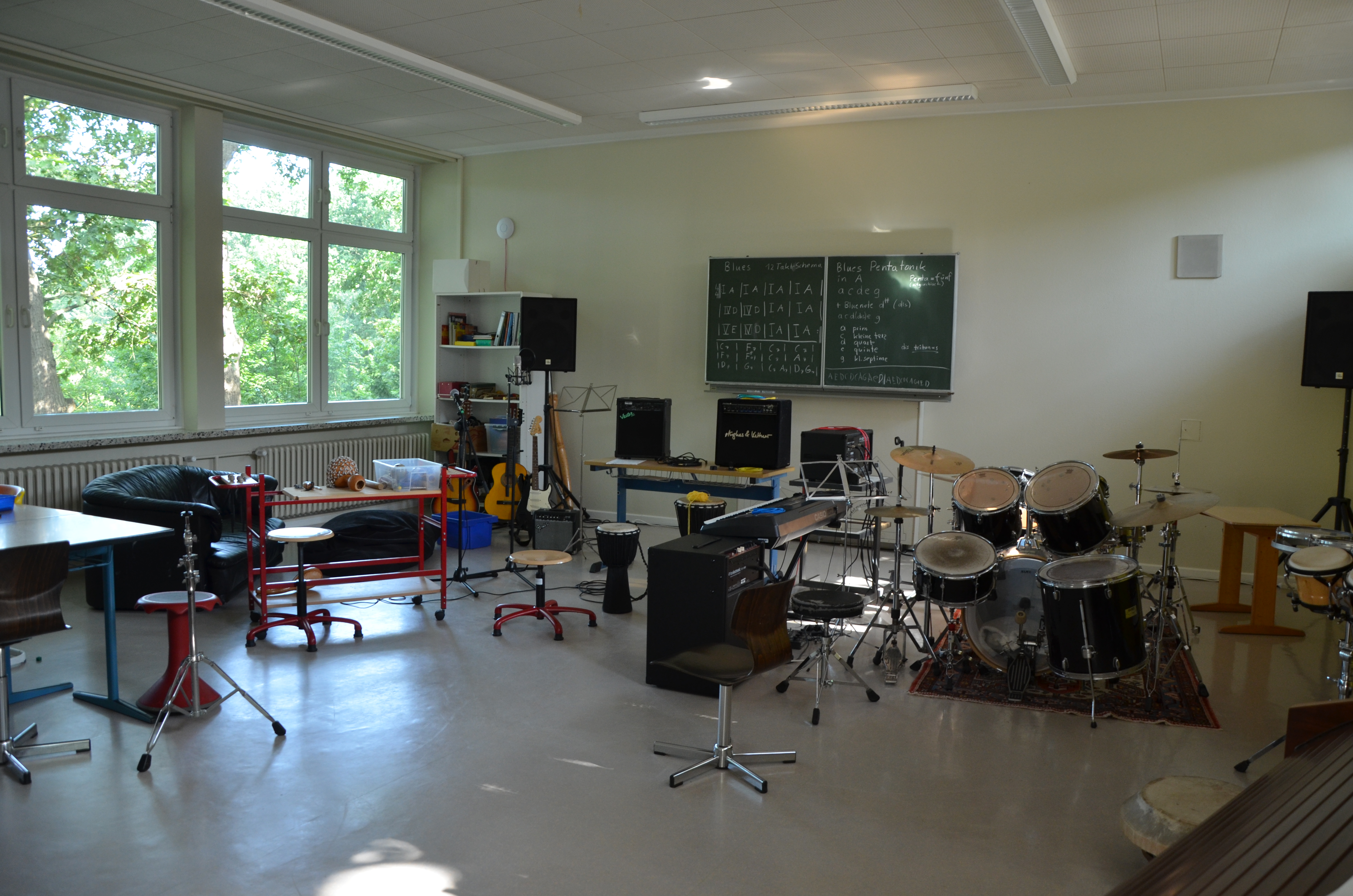 Mit der Waldschule teilen wir uns die Aula und eine Lehrküche. Die Turnhalle wird von vielen Menschen aus den Schulen und den örtlichen Vereinen genutzt. Sie bietet eine große Zweifachhalle, eine kleine Halle und einen sogenannten Kraftraum mit langer Spiegelwand.